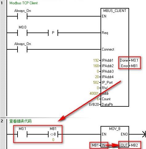 答:出现错误时,MBUS_CLIENT 指令输出参数Done 会为1,但是,Done在连接建立完成,连接断开,响应完成时都会出现置位为1的情况。