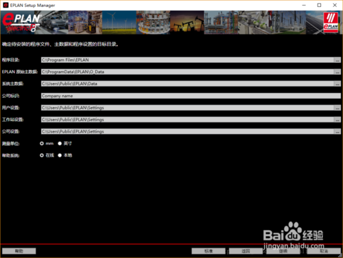 4、选择各组件的安装位置和图纸单位,安装位置推荐全部安装到C盘,单位建议选择mm。单击“继续”进入下一步安装。