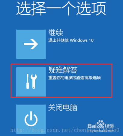 2.重启之后,系统进入到“选择一个选项”界面,选择“疑难解答”;