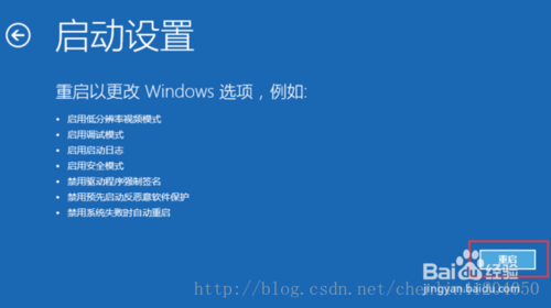 4、选择“启动设置”,然后在弹出的界面中单击“重启按钮”;